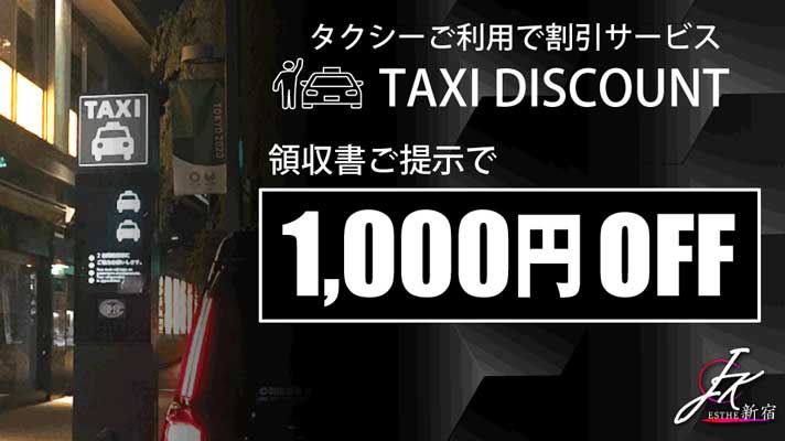 タクシーでご来店のお客様は領収書の提示により1000円の割引をさせていただきます。